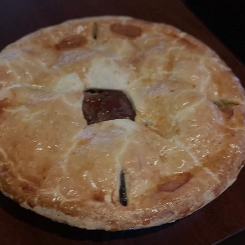 Fresh ground beef, peas, carrots and gravy topped with homemade mashed potatoes baked until golden brown