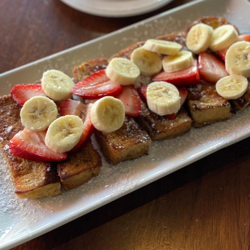 Dipped in our special Cinnamon, Nutmeg batter & Panfried & Dusted with Powdered Sugar. Served with Nutella & Maple Syrup.