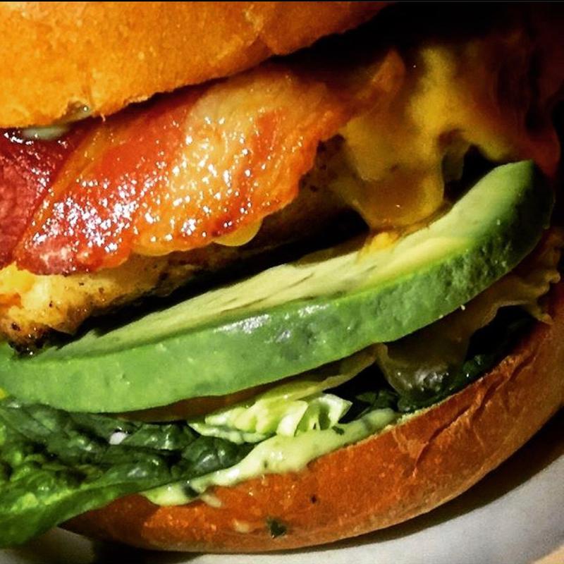 Bacon, Egg, Cheese, Avocado Smash on a Brioche Bun
